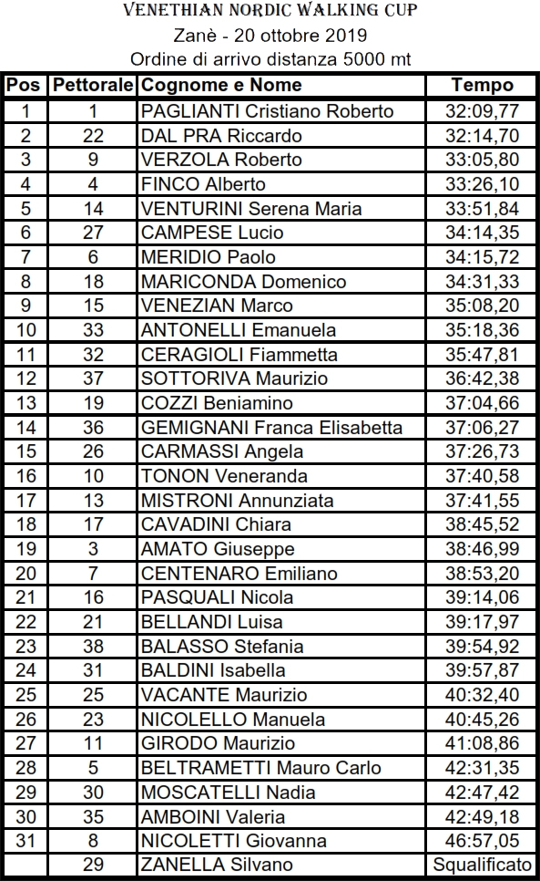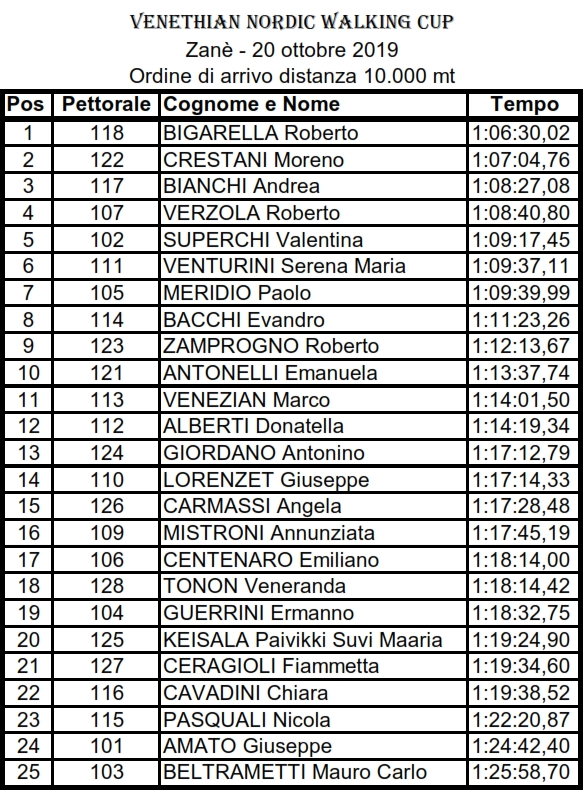 Venethian Nordic Walking Cup – Ordine di arrivo